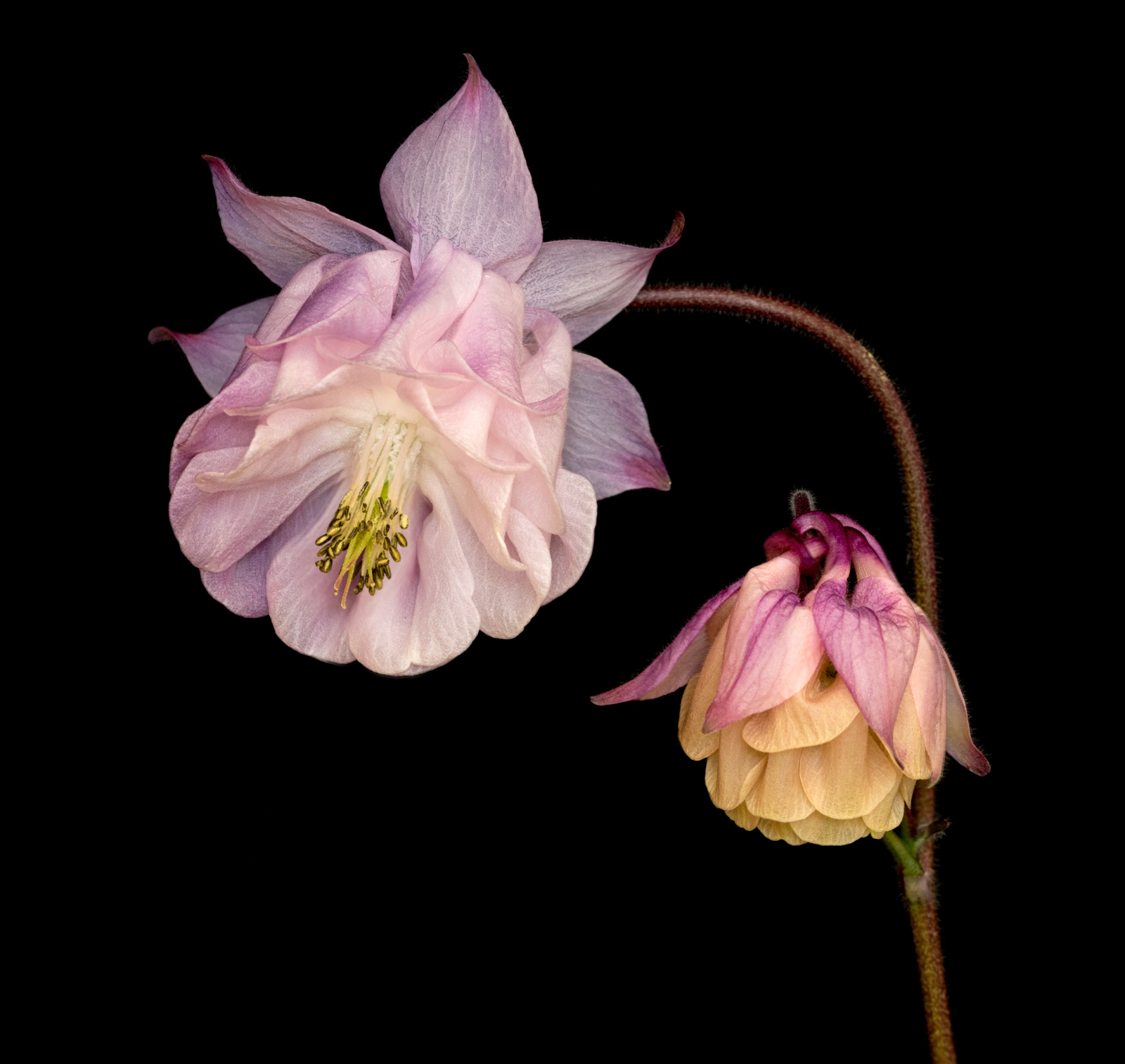 Bringing specimens indoors and capturing them against a black background, allows critical focussing without any wind movement. Compiling a few individual shots ensure images are in focus right across each bloom.