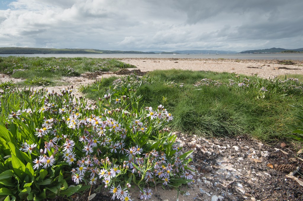 Finally, back at the sea shore, just a few meters from the yellow flower at the top, I found clumps of Sea Aster. Using a wide angle lens, I went in close for an environmental portrait of this plant. I was trying to show not only the plant but the type of habitat that it thrives on. In this case the edge of the beach.