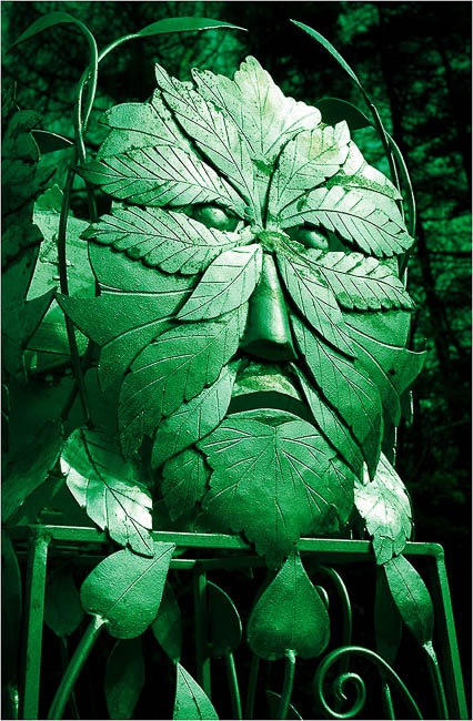 And as Anne makes clear, Monochrome doesn’t just mean Black and white, it just means shades of one single colour throughout the tonal range. I took the next image at Greenbank Garden in Glasgow. It is of a feature on gate which in true life is just a silvery grey. It’s an image of the Green Man the symbol of rebirth, representing the cycle of new growth that occurs every spring. Well shouldn’t it be green – so with a little help from the software, it can be….. a monochrome in green.