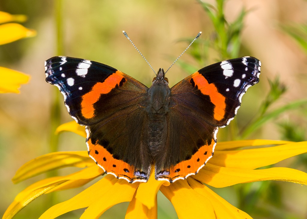 That’s a Dark Green Fritillary – I know it’s orange but there’s dark green on the underside. I really like that image with it’s diagonal line of symmetry. But if I straighten the image up like with the Red Admiral below, does it increase the impact?