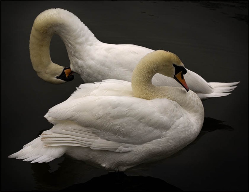Last week I had two (almost) symmetrical swans and here I have another two that chose to show me asymmetrical positions, and I think they still balance one another reasonably well.