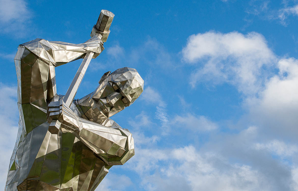 It’s certainly eye-catching; though to my eyes it seems to dehumanise those workers making them appear as automatons, swinging their hammers robotically to bend steel plate and close rivets. And maybe that’s an intended interpretation. The construction doesn’t seem to celebrate the knowledge and skills of the workforce but focusses only their brawn.