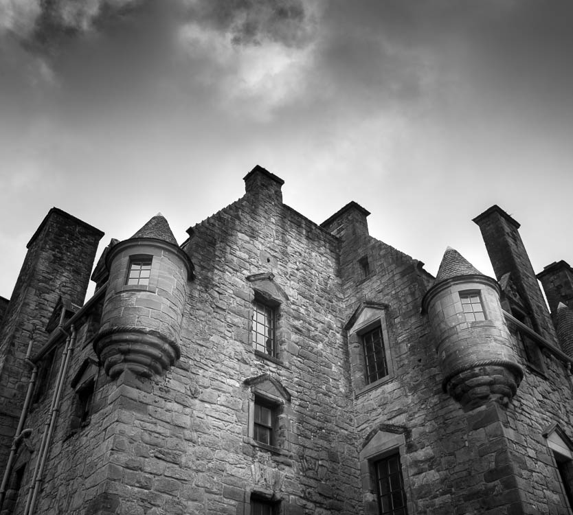 Ancient castle on a dreary day. Dark clouds forming to rain down on the 16th century walls, soaking the cute little turrets with their outlook over the river estuary.