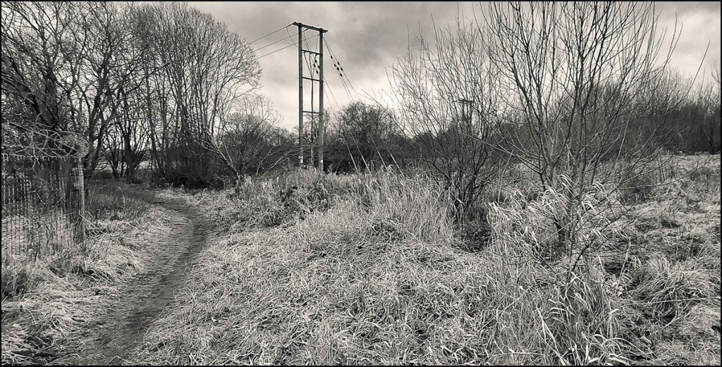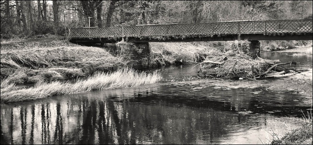Includes the route down to the river. the river itself, the old bridge collecting branches blown down by the storm, the withered Japanese Knotweed stalks, the lodge at the bridge, and the river beyond. All in these wet winter conditions. It’s easy access to nature – always enjoyed.