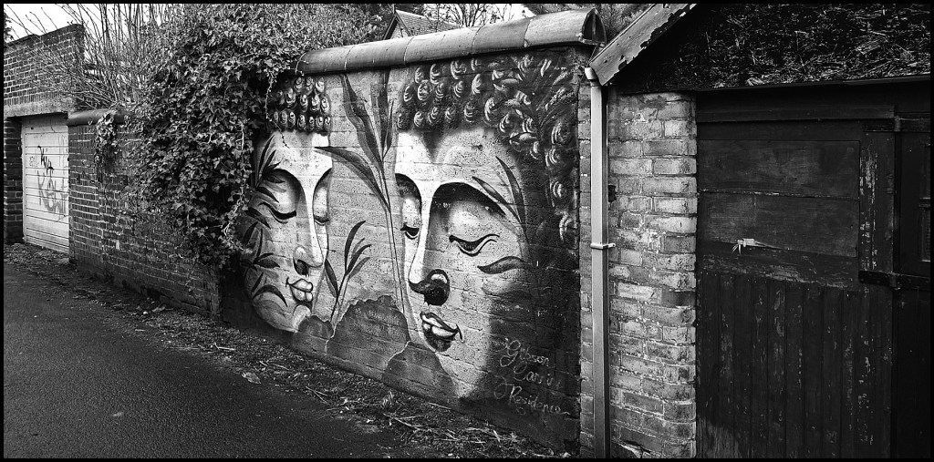 When you walk down the lane at the back of some houses in Ayrshire, you don’t expect to see something like this. And it’s a lane for general access with garages, some in poor condition, and those walls of the back gardens of the houses. And then this mural appears and certainly raises the spirits. I walk this way with my daughter’s dog on Thursdays and rain or shine, it’s a lovely thing to see.